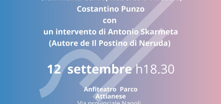 “Universo Troisi” con i ricordi di Antonio Skarmeta, il grande romanziere autore de “Il postino di Neruda”,e degli amici del grande comicoE “Funneco verde”, performance di danzasui testi di Salvatore Di GiacomoGiovedì 12 settembre...